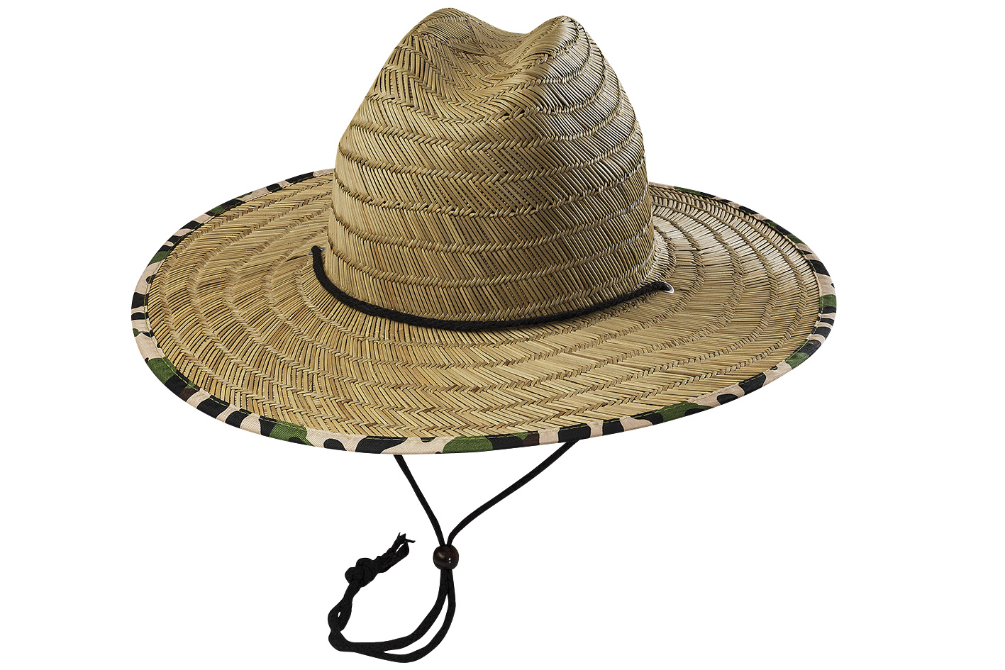 Sombrero de junquillo natural. En forma beach lifeguard australiano. Para looks playeros o para momentos de mucho calor, su gran ala da protección hasta los hombros.