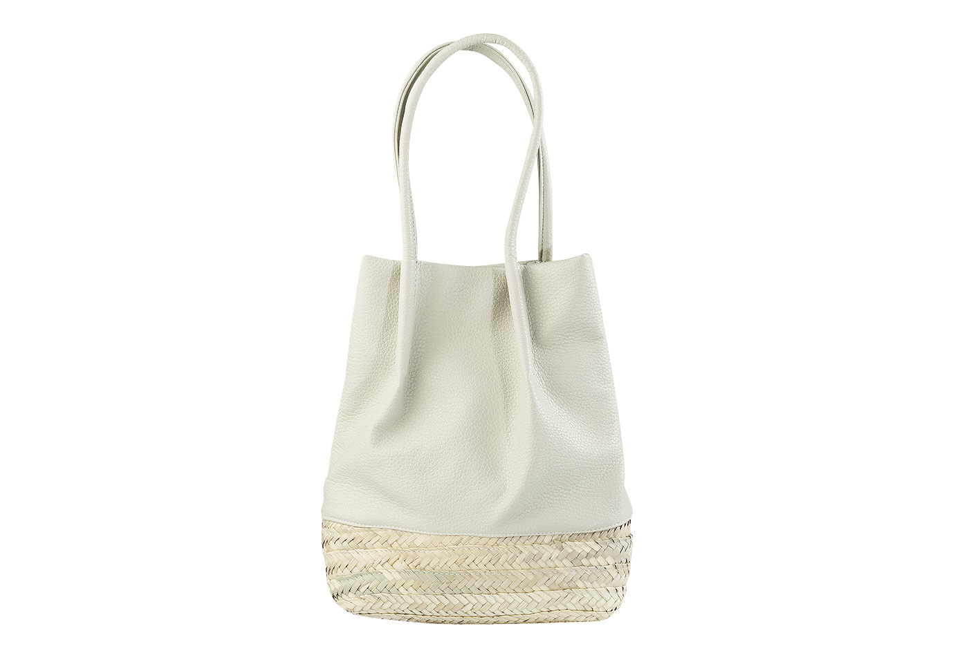 Bolso en forma de totém, a la moda de los mas jóvenes. Un bolso con mucha capacidad, su base de palma de pleita blanca le da ese encanto artesanal y natural. Combina con todos los looks de verano y también en invierno.